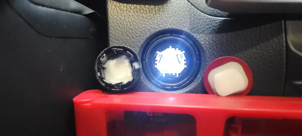 Bonobo Products Billet Aluminum Push to Start Button is CNC-machined from strong 6061 aluminum, built for Lexus and Toyota vehicles. It installs easily with the included tool and fits just like OEM, no modifications needed. The TRD cut-out is illuminated by the factory ignition switch light, boosting nighttime visibility while maintaining all OEM functions. The result is a sleek, durable, and reliable finish that stands out day or night.